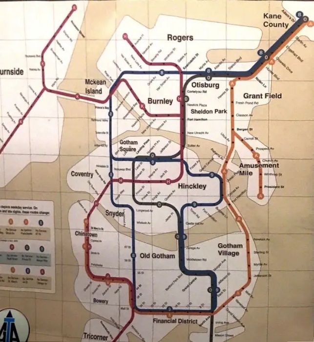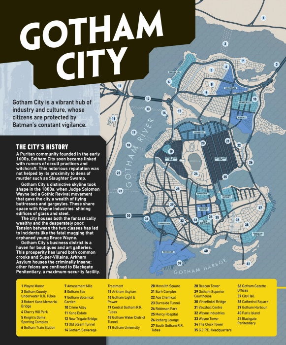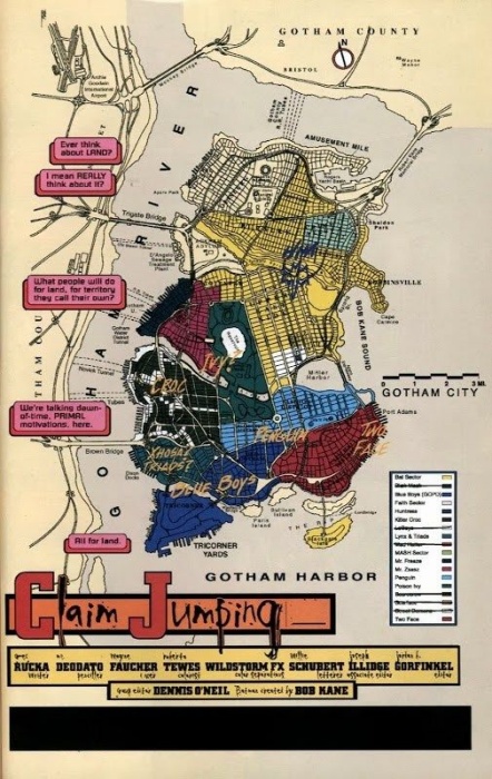 Somewhere between it all, smushed together and twisted this way and that, an actual “Gotham City” can be mapped out.