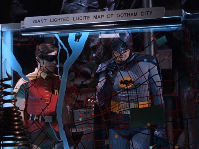 Gotham City has been portrayed a few different ways. One of the earliest portrayals was in Batman (1966), which was really just a section of St. Louis on lucite.
